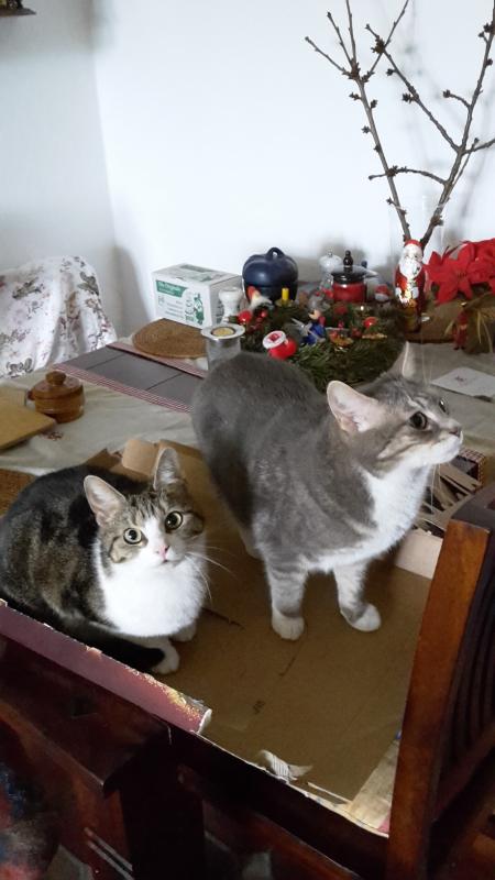 Heute habe ich den Adventskalender geplündert. Es waren 24 kleine Gläschen mit Gewürzen drin. Der Karton lag auf dem Tisch, während ich die Gläschen in der Küche verstaute. Als ich wieder ins Wohnzimmer kam, erwartete mich folgender Anblick: :D :D