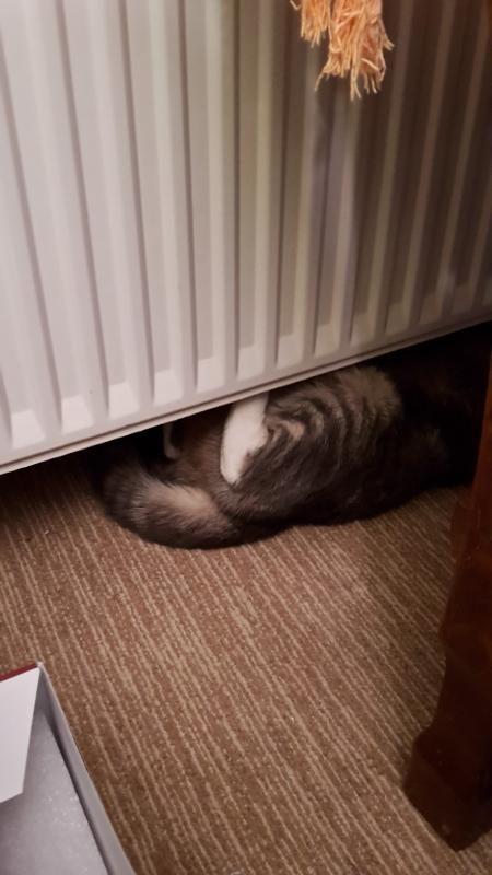...während Sita von unten her versucht, den Heizkörper zu durchdringen.