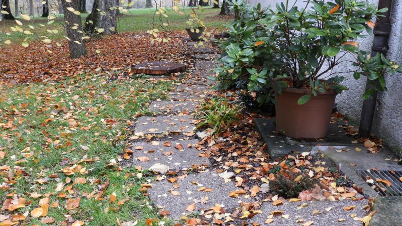 Ah....auf dem Foto kann man schlecht die Tiefe von Garage und Weg abschätzen.....ich würde aber versuchen, die Schwelle an einer schon vorhandenen, wenn auch schwachen natürlichen „Grenze“ anzulegen, und da fällt mir auf dem Foto der Übergang vom dichteren Schatten der vorderen Baumkronen zu der anschließenden „Lichtungswiese“ auf, jetzt hervorgehoben durch das Fallaub, im Sommer ist wahrscheinlich dort nur das Gras schütterer und wird dann wieder dichter.