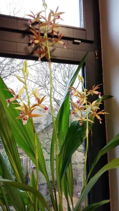 Ich habe mal gezählt, es blühen vier Orchideen bei mir - und diese o.g. Hybride, die wohl etwas zickiger ist, mit den kleinen magentafarbenen Blüten hat drei Blütenstiele geschoben ;D. Also es passt ihnen recht gut bei mir....
