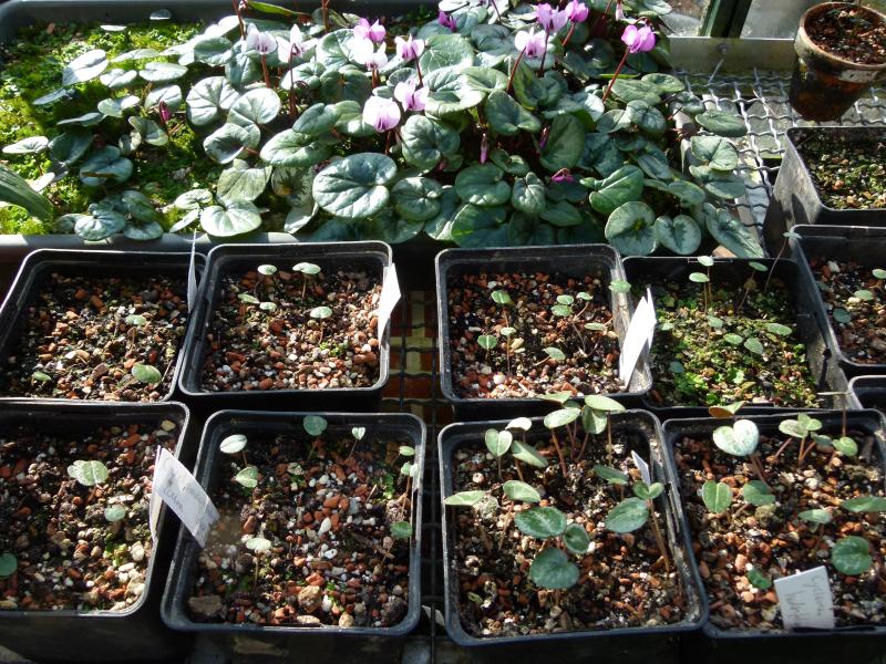 Meien Aussaaten vom letzten Herbst, Saatgut noch von Jan Bravenboer, das meiste sind verschiedene C. coums. Dahinter die Aussaat vom Herbst 2016.
