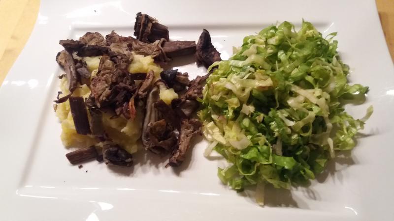Kartoffel-Sellerie- Stampf mit gebratenen Parasolen und Endiviensalat.