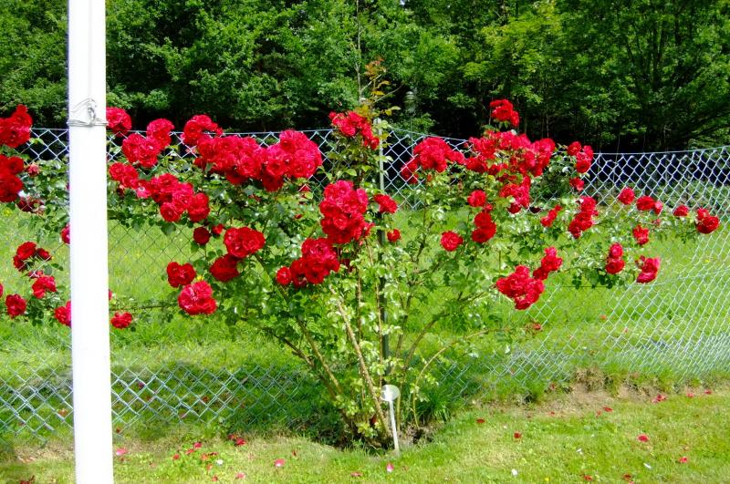 Dein Zaun schreit geradezu nach Strauchrosen und Clematis.