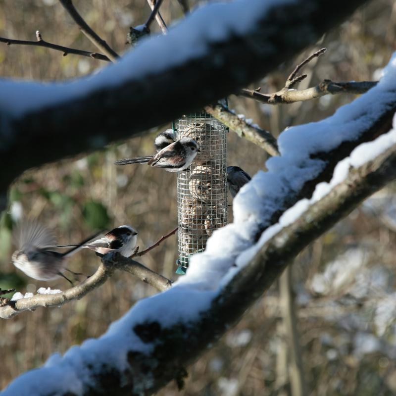 Schwanzmeisen kommen bei uns auch immer in kleinen Gruppen. Finde sie sehr putzig :)