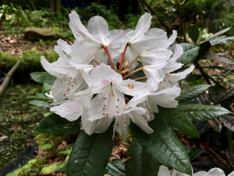 Heute bin ich an einem ca. 16 Jahre alten Sämling, (wahrscheinlich eine Hybride zwischen Rh. fortunei und Rh. decorum) vorbeigekommen. Unglaublicher Duft! Das Foto ist ein paar Tage alt, die Blüten brauchen lange, bis sie offen sind.