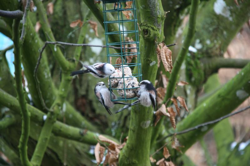 Heute war wieder eine Horde Schwanzmeisen da. Die Bildausbeute ist leider nicht so gut, die sind ja sowas von schnell. Aber so schön anzuschauen.