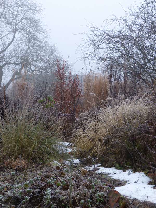 Heute Morgen hing der Nebel noch über dem Garten. So ziemlich die letzten Fotos mit dem Winteraspekt in den Beeten, der Rückschnitt ist bereits im Gange... :)