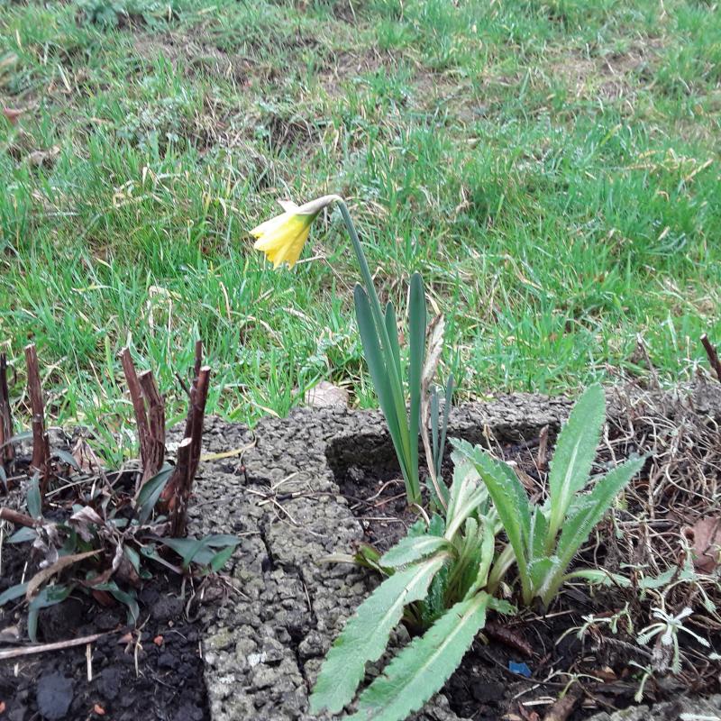 Hier blüht seit gestern die erste Narzisse, eine February Silver.