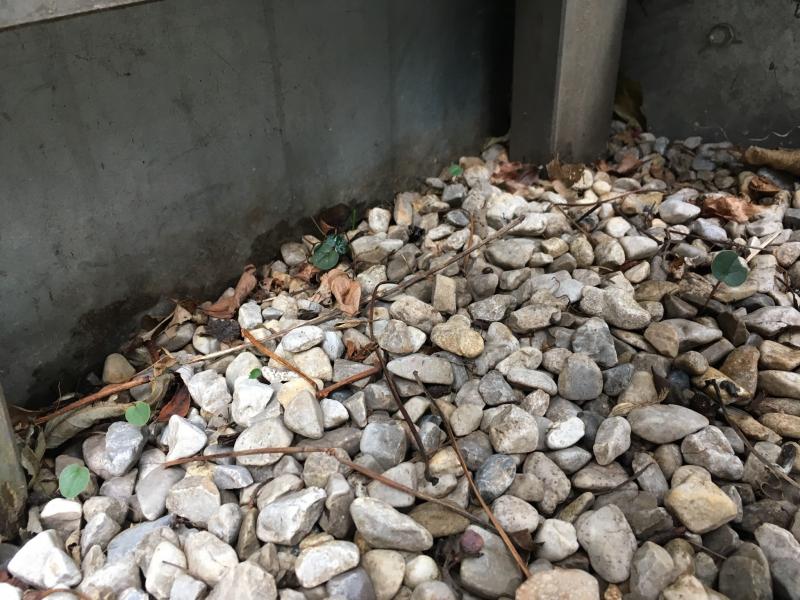 Im Kiesstreifen des Gründachs dürften Ameisen die Samen verteilen. Zwei zweijährige und ein paar einjährige Coum:
