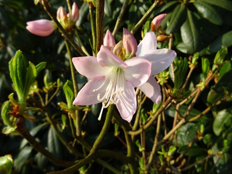 Foto vom Rh. dauricum, man sieht die toten älteren gegen die lebenden neuen Knospen.