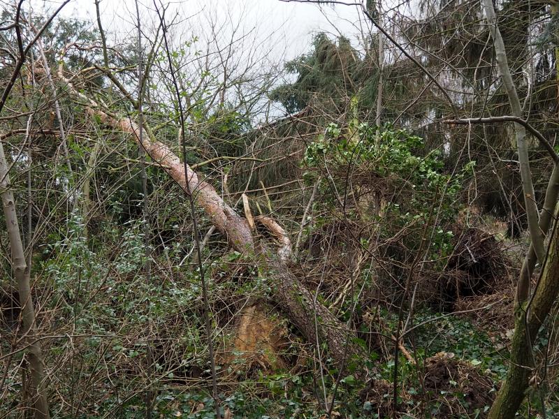 Friederike hat letzte Woche ganze Arbeit geleistet - 15 große Kiefern, Tannen und Fichten liegen abgebrochen oder umgeworfen quer durch meinen und Nachbars Garten.