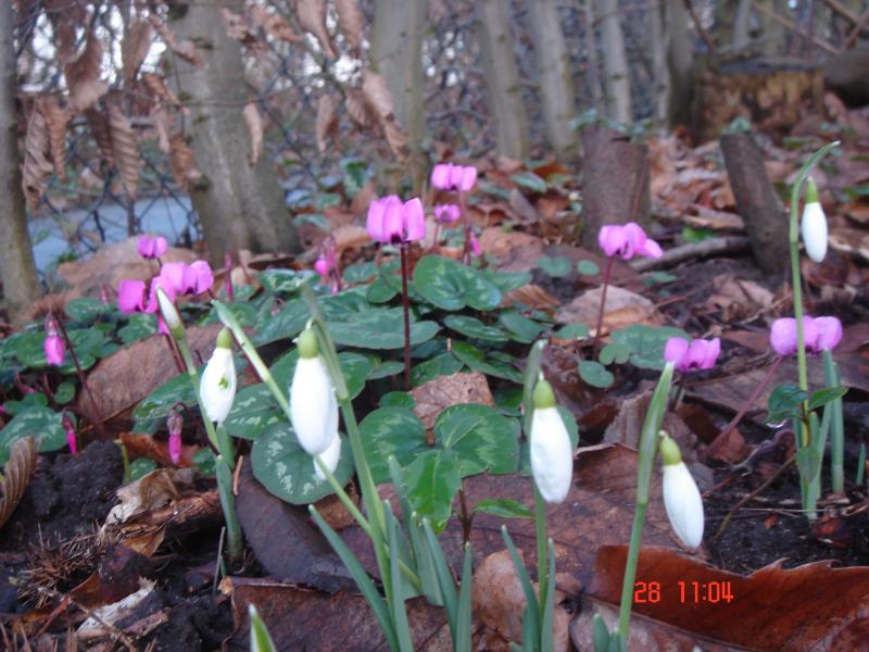 Später als bei den meisten von Euch, aber immerhin , blühen auch hier die ersten Cyclamen ( mit Galanthus nivalis im Vordergrund )