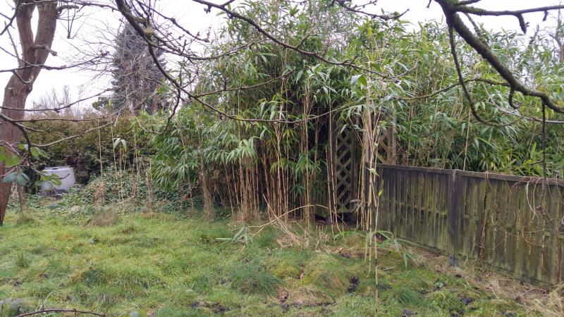 Aber sein Standort ist ein Kleingarten, in dem sich der Bambus offensichtlich ein paar Jahre ungestört (die Pächterin war seltenst da) verbreiten durfte. Nun, nachdem er die Nachbargrenze überschritten hat und der Garten im Sommer neu vergeben werden soll, ist er ein Problem geworden und muss raus.