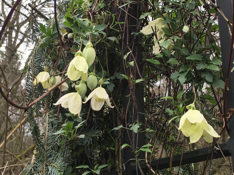 Um die Pflanzen selbst fürchte ich eigentlich nicht, Bristlecone. Beide sind jetzt fünf Jahre ausgepflanzt und hatten noch nie einen Frostschaden. Die älteren Triebe der Clematis armandii halten den Frost locker aus - so kalt wird es hier nicht - nur die diesjährige Blüte ist wahrscheinlich größtenteils futsch.