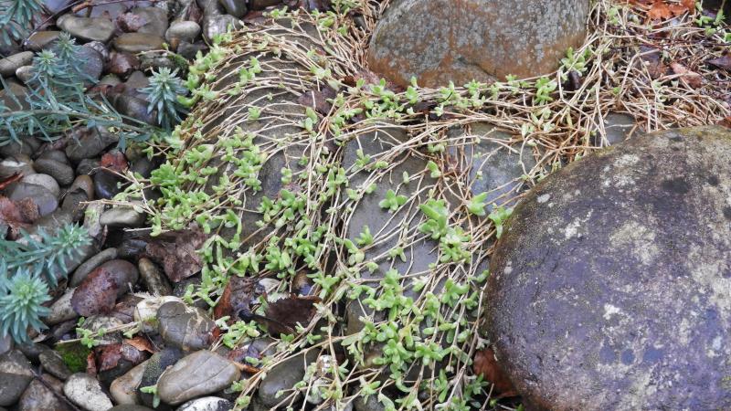 Es war zwar noch kein richtiger Winter aber auch im vorigem Jahr haben die Delosperma so im Steingarten ausgesehen.