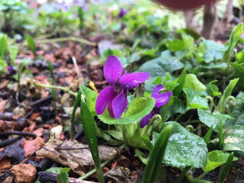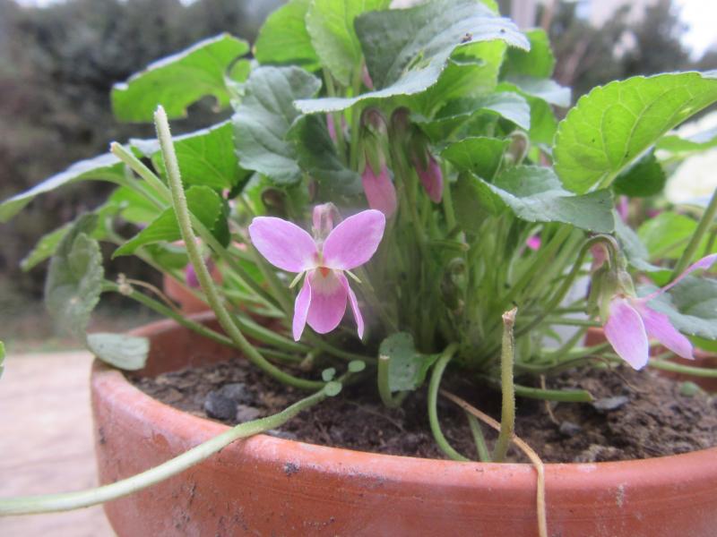 Ich habe gestern noch schnell ein Foto von meinem hübschen Viola odorata-Sämling 'Oktopus' gemacht, bevor der Frost wieder zuschlägt. Ende Feber/Anfang März sind bei -10 Grad viele Knospen erfroren, ein paar Blüten der acht Ausläufer haben es aber geschafft.