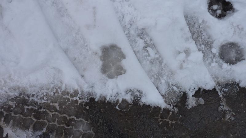 Die Spurenlage bestand bis ich zufälligerweise zwei Orte weiter an der Landstraße einen Sichtkontakt hatte. Sichtkontakte sind ja kein sicherer Nachweis. Die Spurenlage lässt indes die Haus- und Hofhunde hinter sich, denn die begann als die Straße gesperrt war und außer uns da keiner rumturnte. Dennoch hegte ich offenbar zu Recht die Hoffnung, er würde sei Glück jetzt in einem anderen Bereich suchen. Derzeit herrscht wieder Ruhe an der Zäunung.