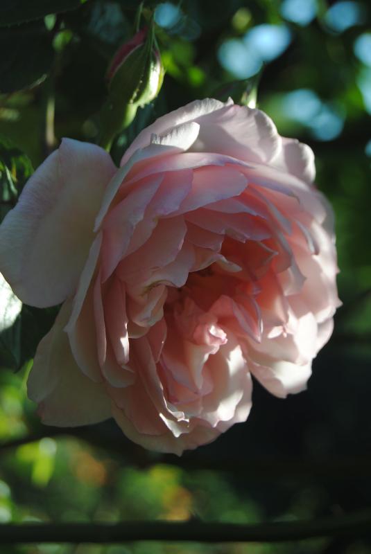 Zum neuen Jahr hat sich - einigermaßen – eine Blüte von ‘Rosarium Uetersen‘ geöffnet. Die Knospe zeigte schon seit Wochen etwas Farbe. Nun – bei diesem milden, sonnigen Wetter – gab sie sich den letzten Ruck.