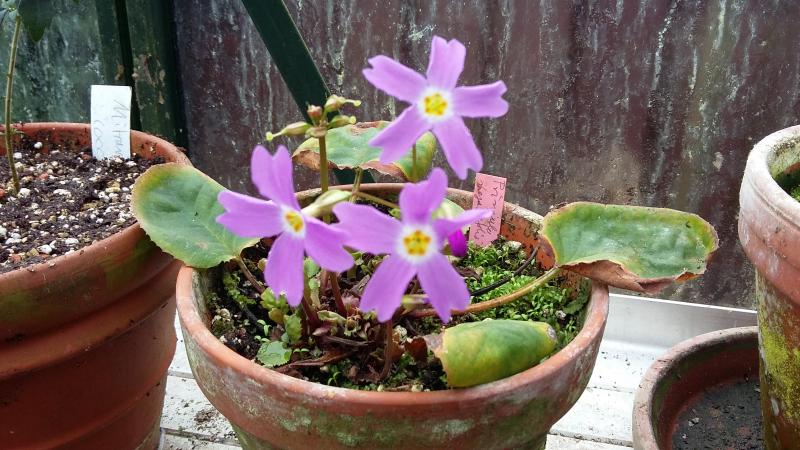 Primula megaesifolia blüht hier zum ersten Mal. Bei mir hat das Laub etwas gelitten, eigentlich ist sie immergrün.