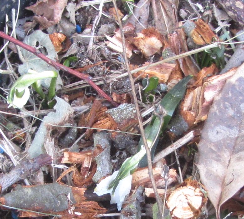 Leider hat der lange tiefe Kahlfrost trotz Schutz mit lockerem Tannenreisig gerade die weißen Leucojum arg gebeutelt.