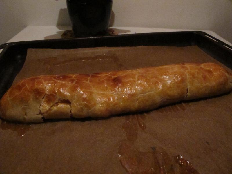 Hier gab es Erdäpfelgemüselaibchen mit Rucolachicoreeetomatensalat und Joghurtsauce. Und gestern Abend noch den schnellsten Apfelstrudel der Welt, eigentlich Apfelschlangel aus Butter-Topfenteig: