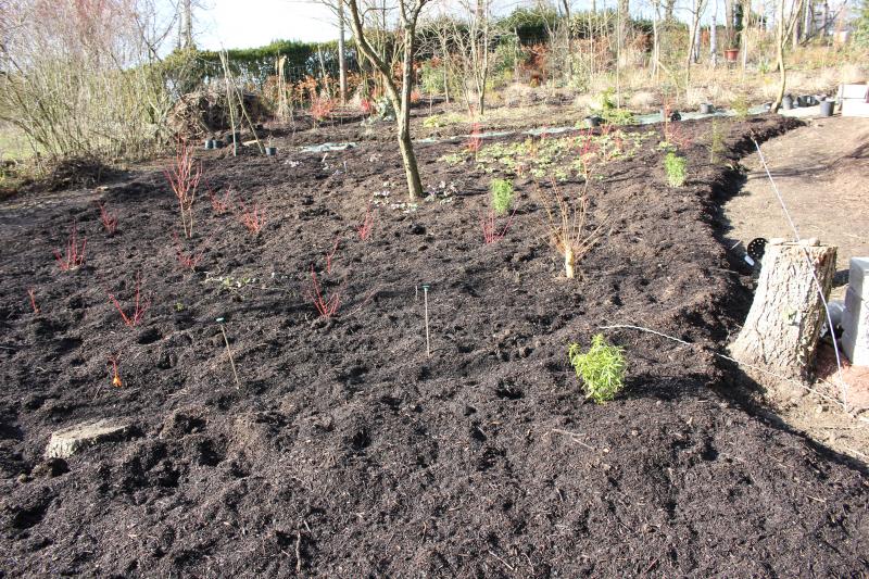 Und jetzt nochmal der Stand des Winterbeetes. Wie man sieht, sieht man nix. ;D Die Gehölze sind natürlich noch klein und es fehlt noch größtenteils die staudige Unterpflanzung.