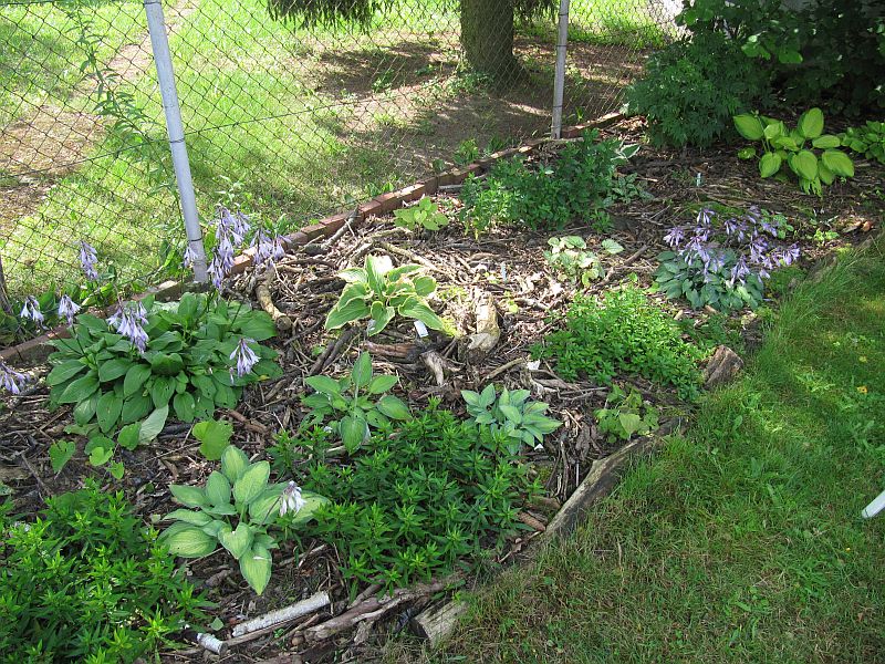 Ach ja, mein Schattenbeet. Heute früh habe ich gesehen, dass auf dem Nachbargrundstück die Birke und die Fichte gefällt wurden. Ab sofort ist es ein Sonnenbeet. Die Hostas hatten kaum Zeit sich zu etablieren. :'(