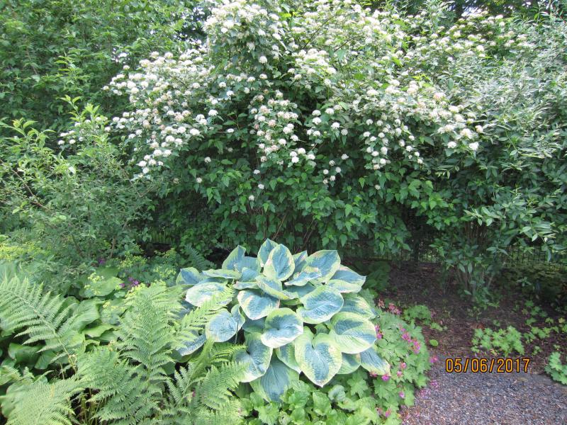 niedrige Sorten von Spiraea, Deutzien und Philadelphus (z. B. 'Belle Etoile')
