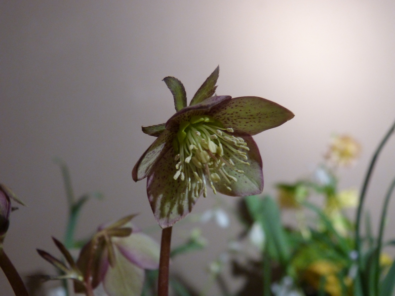 Neben 'Jennifers Liebling' blüht erstmals ein Sämling, der nicht annähernd so schön ist wie die Mutterpflanze. Er hat optisch mehr von x hybridus, was ok wäre, aber ich mag das verwaschene Rötlich-Grün nicht so sehr. Vermutlich ein Fall für den Kompost... ::)
