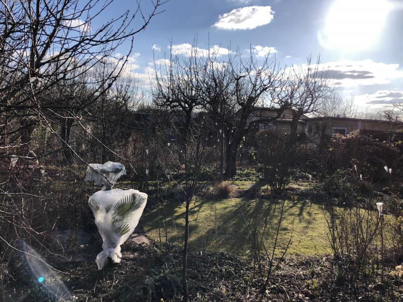 Hab heute noch Töpfe in den Schuppen geschleppt, die letzten Christbaumzweige verteilt und ein paar Lieblingskletterrosen eingepackt. Die sind alle schon so weit... :'(