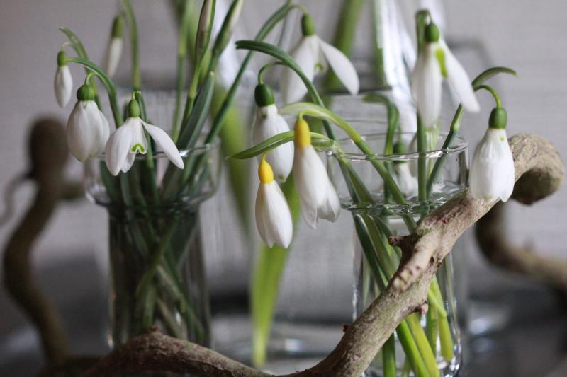 Im vergangenen Jahr habe ich einige kleine Vasen gefüllt. So hatte man wenigstens im Hausflur ein frühlingshaften Empfang. Einige Sorten verströmen ja auch einen angenehmen Duft. Momentan sind hier leider sehr viele Blütenstängel am Boden festgefroren.