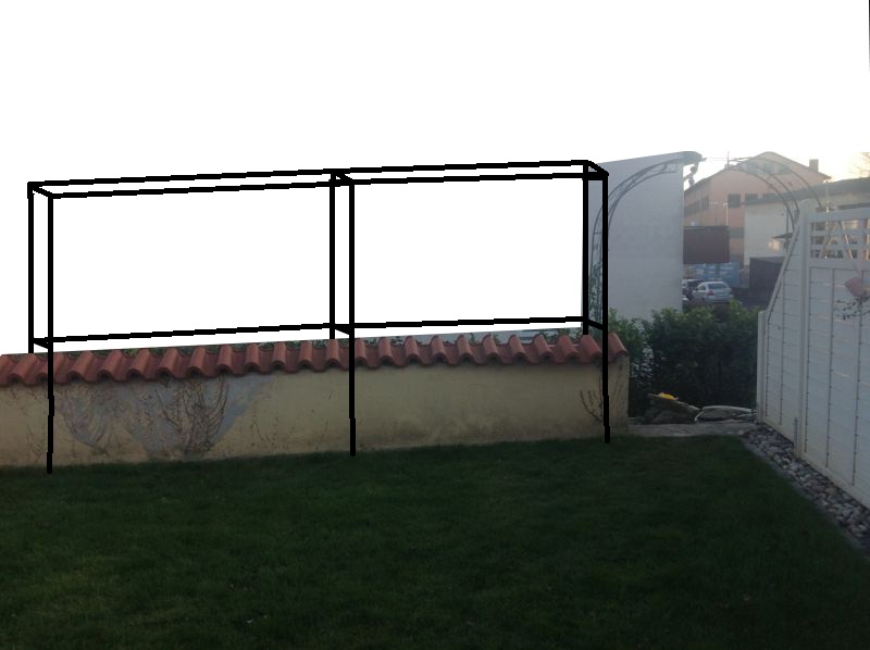 Allerdings könntest du auf das Problem stoßen, wenn du die Löcher zum Befestigen der Streben bohrst, je nachdem wie tief, daß du auf Armierungseisen in den L-Steinen triffst.