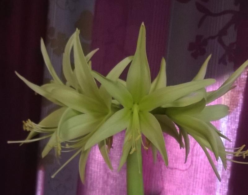 Eigentlich wollte ich ja keine. Aber die war in der Tüte aufm Ramschtisch schon 20cm weit spiralförmig ausgetrieben. Kann man doch nicht einfach liegen lassen sowas, wirkt schlimmer als Kindchenschema und setzt sofort den Rettungskaufreflex in Gang. Und grünen Blüten kann ich sowieso nicht widerstehen. :-[