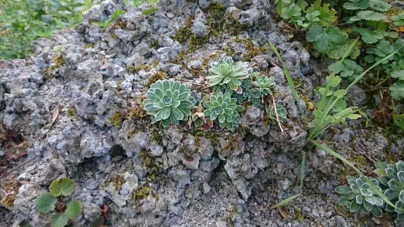Ich habe im Zweitgarten etliche Betonplatten, teilweise vom Vorgänger zerkleinert. Dieses Geröll habe ich mit Saxifragen bepflanzt.