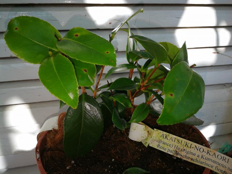 Von den letztjährigen Savioli habe ich auch keine ausgepflanzt , da die winzig waren, aber die kleine Ichifusa und alle Savioli Kamelien von 2016 und die anderen von Kniesel. Alle haben überlebt ! Anbei die einjährige Akatsuki-no-koari, die auch besser ausssieht als die Winzlinge vom letzten Jahr, von denen nur 50% überlebten. Die Akatsuki-no-koari sind zwei Stecklinge in einem Topf, die ich trennen werde, damit ich ggf. eine in Reserve ist. ie hat kleine Pilzflecke und muß wohl trocken gehalten werden. Die scheint tatsächlich heikel zu sein....