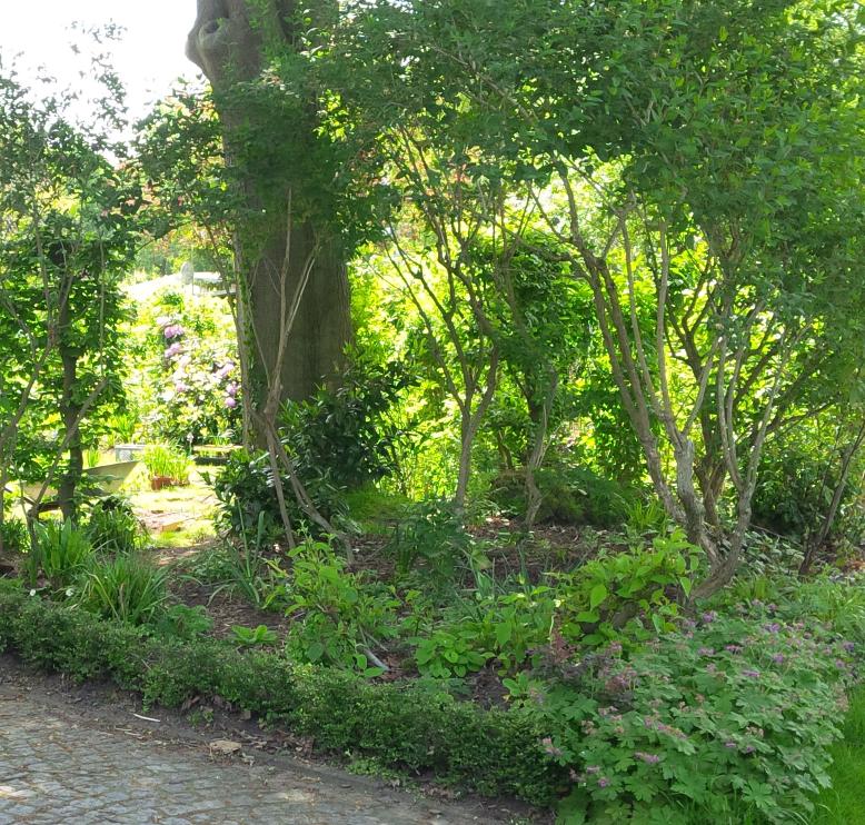 Habe noch ein Photo gefunden. Die Berberitze guckt rechts unten aus dem Geranium raus. Ich habe sie erst gefunden als ich da den Efeu rausgerissen habe. Die war fast tot und legt jetzt gaaanz langsam zu.