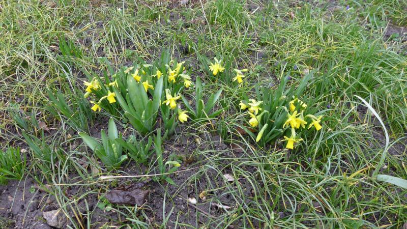 Bei den deutlich gestiegenen Temperaturen haben sich viele Galanthus nivalis hier im Garten wieder aufgerichtet. Es bimmelt ordentlich momentan und einige Farbkleckse gibt es auch