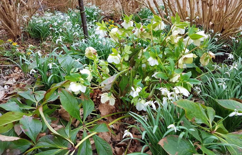 Ich bin sehr froh, dass die Helleboren den Frost so gut überstanden haben und fast alle wieder "auferstanden" sind. Nur einige haben Faulstellen am Stengelgrund. Ich hatte sie mit Tannenzweigen zugedeckt.