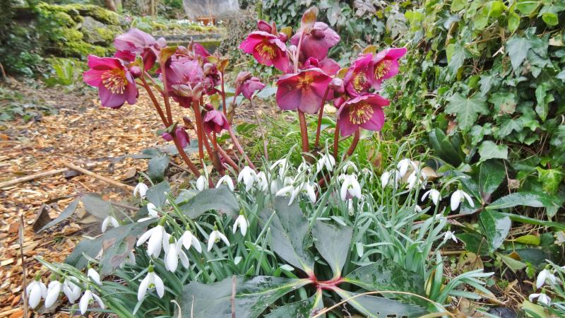 Ich bin sehr froh, dass die Helleboren den Frost so gut überstanden haben und fast alle wieder "auferstanden" sind. Nur einige haben Faulstellen am Stengelgrund. Ich hatte sie mit Tannenzweigen zugedeckt.