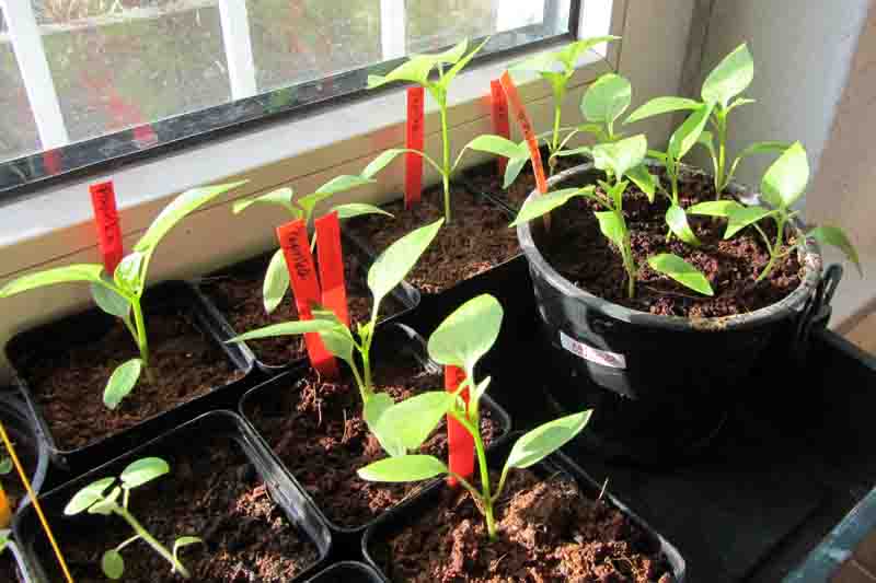 Piri Piri, Anaheim, roter Spitzpaprika und miniatur chocolate stehen bei mir am Fensterbrett.