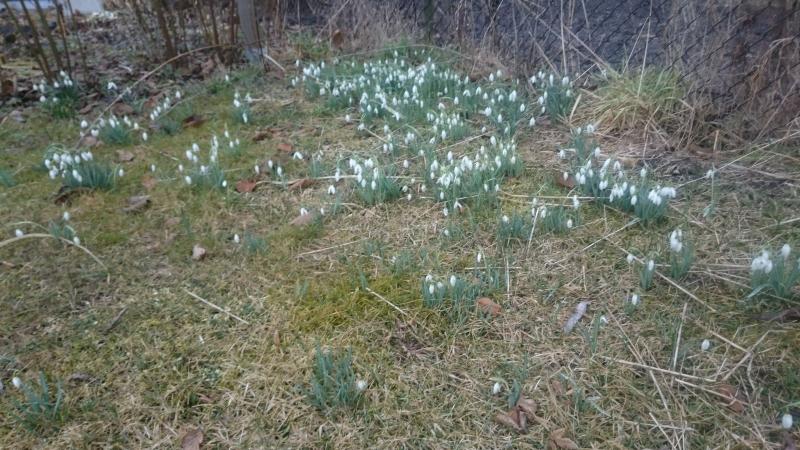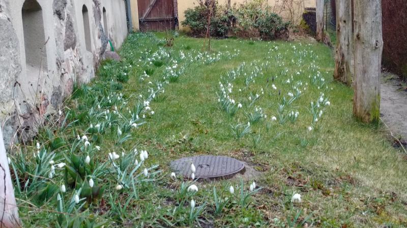 Es war heute zwar kein Glöckchenwetter und ich hatte auch nur das Wischdingens mit im Garten, aber man sieht wohl, dass es langsam wird. Im Vorgarten ist der Bestand etwas lückig. Wenn sich da Mal nicht sogar die Fliege gütlich getan hat...
