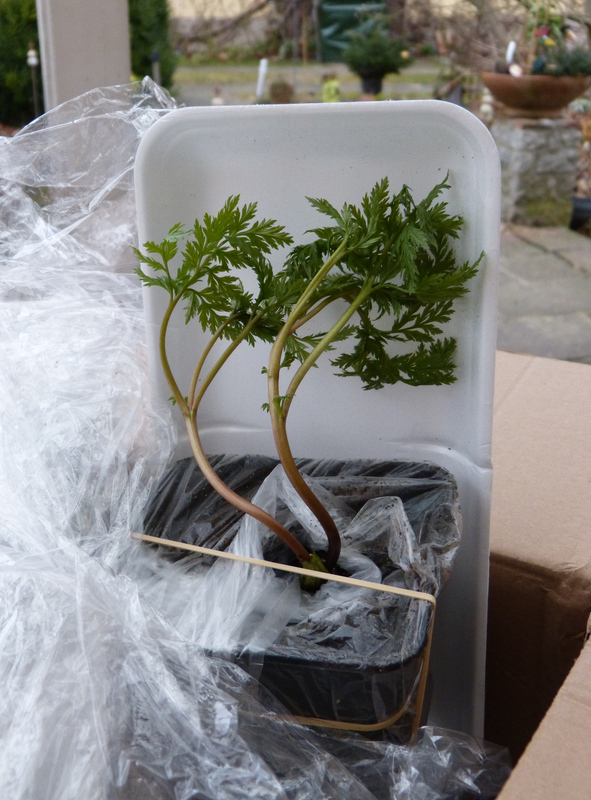 Hier ist heute eine Sendung von der Gärtnerei Schoebel angekommen und ich bin begeistert, erst einmal von der schnellen Lieferung (am Dienstag aufgegeben!) bzw. dem entgegenkommen, sie mit der Post zu schicken, da ich mit diversen Diensten denkbar schlechte Erfahrungen gemacht hatte. Hier kann man ja nicht einfach ein Paket vor die Haustür stellen, sondern muß unten am Haustor an der Gegensprechanlage läuten, durch den Hof gehen und die Wohnung finden. Beim letzten Mal (DPD) haben die nicht einmal gewartet, bis ich vom letzen Winkel der Wohnung an der Tür war, um den Aufmachknopf zu drücken, und haben das Paket gute 35 Min. Fußweg von hier an einer Stelle deponiert, wo erst einmal keiner da war. das waren zum Glück keine Pflanzen, denn es war der 23.12. >:(