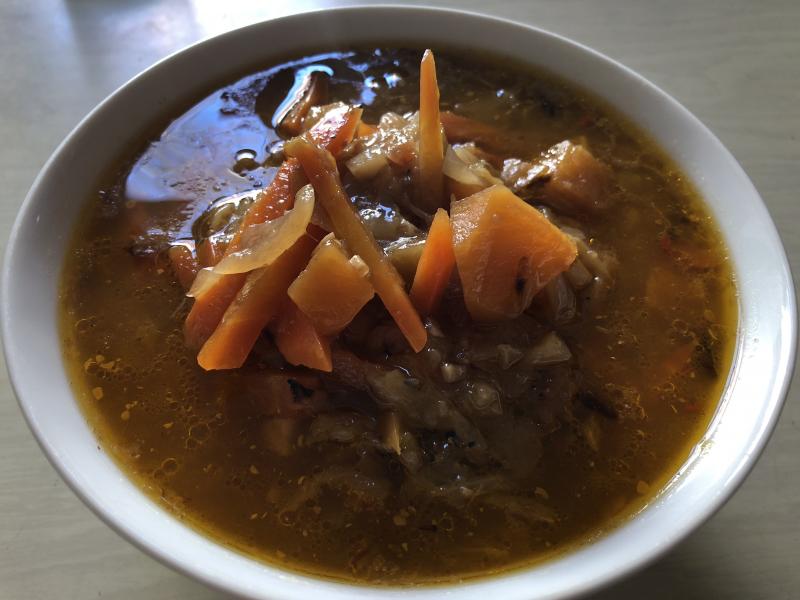 nach einem sonnigen und frostwinddurchbrausten gang über den nächstgelegenen flohmarkt gibt es gemüseeintopf auf hühnerbrühebasis, mit spitzkohl, petersilienwurzel, karotte und steckrübe, gewürzt mit gartenchili (harissa, chilisalz), kümmel und kreuzkümmel. wärmt und tut gut!
