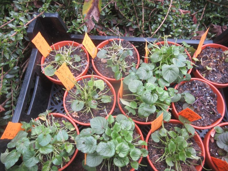 Ja, die Sorten sind alle in Töpfen, so lassen sie sich besser vergleichen und auf Nasenhöhe bringen, Sämlinge leichter rauspfriemeln und besonders die schwachwüchsigen wesentlich einfacher behüten und am Leben halten. Starkwüchsige sind wiederum schnell eingeengt, man muss dann halt einen ausreichend großen Topf nehmen. Die Töpfe lassen sich außerdem schnell mal zusammenrücken und unter ein paar Lagen Vlies vor Dauerfrost schützen, im Garten sind letzthin an einigen Stellen die normalen Monsterduftveilchen erfroren, was denen aber nicht den Garaus macht, es wird genug Samen im Boden rumliegen. Dieses ist auch eines der Gründe für die Topfhaltung, es hat bisher immer irgendwann jeden Versuch mit anderen Farben "gefressen".