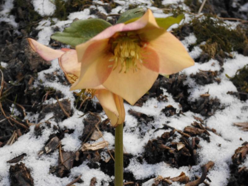 Trotz Kahlfrost und eisigen Ostwind sieht diese H X hybridus (Sorte nicht bekannt ) noch ganz gut aus