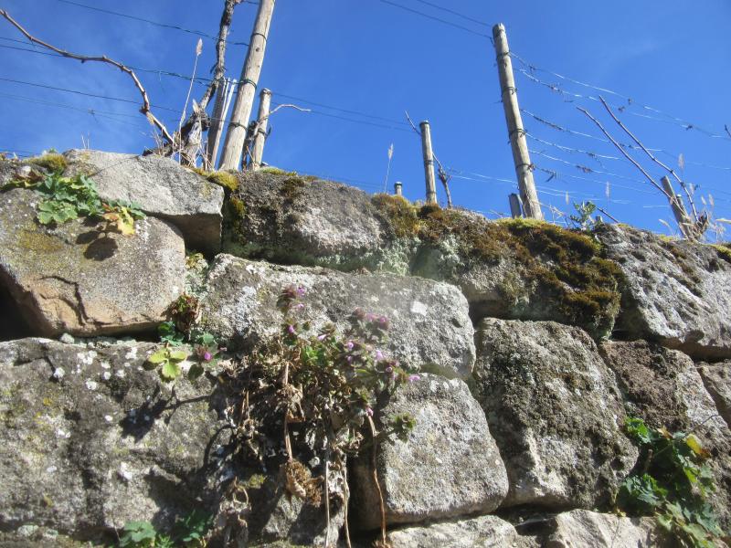 Um die 6°, vor warmen Mauer oder in den Weinbergen kann man ohne Jacke sein, der Himmel ist meist blau, manchmal ein paar Wolken.