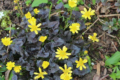 Das gewöhnliche Schabockskraut sollte man besser nicht in den Garten holen, sonst hat man im Frühjahr bald nichts anderes mehr. Aber die Sorten sind nicht invasiv und ausgesprochen attraktiv. Ein paar davon will ich hier vorstellen. Alle Sorten mit brauner Blattfarbe lassen sich auf `Brazon Hussy´zurückführen. Auf einigen der Bilder ist noch der alte Name Ranunculus ficaria.