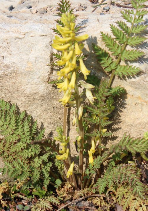 Corydalis cheilanthifolia wird oft nicht gern gesehen, da es sich kräftig aussät. Aber schön ist es doch.