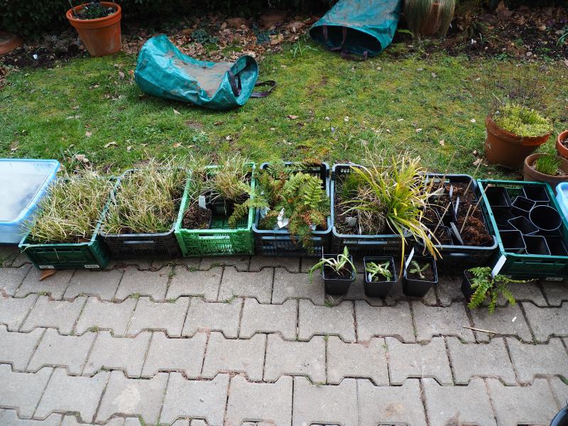 der Standort ist frisch bis wechselfeucht. Die Lichtverhältnisse sind im Augenblick absonnig bis halbschattig, im Sommer bei hohem Sonnenstand wird das mehr sonnig sein. Ich werde sehen, wie die Pflanzen reagieren. Kümmerlinge werden umgepflanzt.
