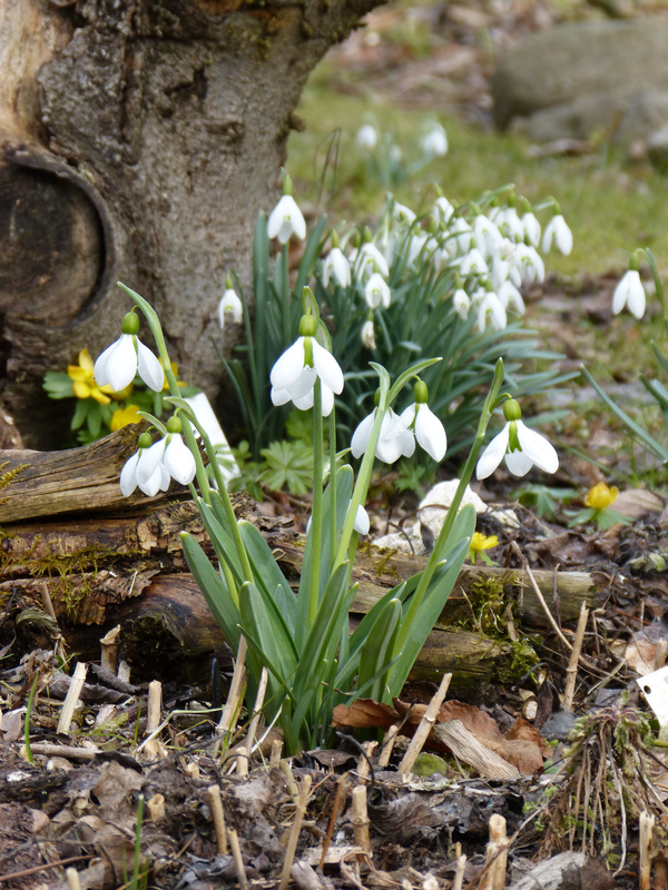Vor ein paar Jahren schickte mir pumpot einen Tuff größere Galanthus plicatus für den Park. Ein paar Zwiebeln pflanzte ich unter Bäume ins Laub, ein paar ins eher sonnige Gras. Gut gewachsen sind sie an beiden Stellen. Bei den sonnig stehenden entdeckte ich heute Sämlinge, bei den anderen im Laub keine. Über die Sämlinge freute ich mich sehr. 8)